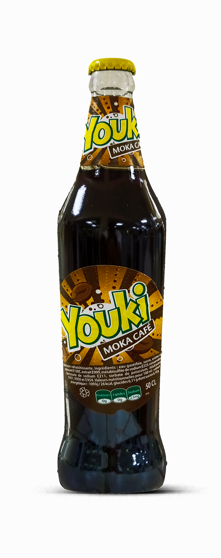 YOUKI MOKA CAFE est une marque de boisson gazeuse produite et commercialisée par la SOBEBRA en verre consigné de 30cl et 60cl.